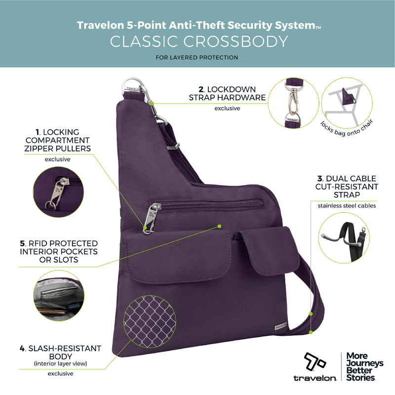 Travelon Classic Anti-Theft Crossbody Bag Purple 42373