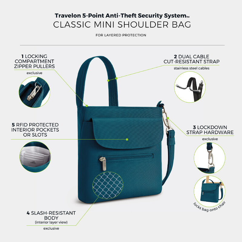 Travelon Classic Anti-Theft Mini Shoulder Bag Teal 42459 - ORDER NOW FOR DELIVERY IN LATE FEBRUARY 2026