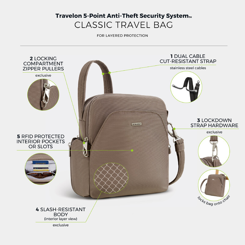 Travelon Classic Anti-Theft Travel Bag Hazelnut 42224 - ORDER NOW FOR DELIVERY IN LATE FEBRUARY 2026