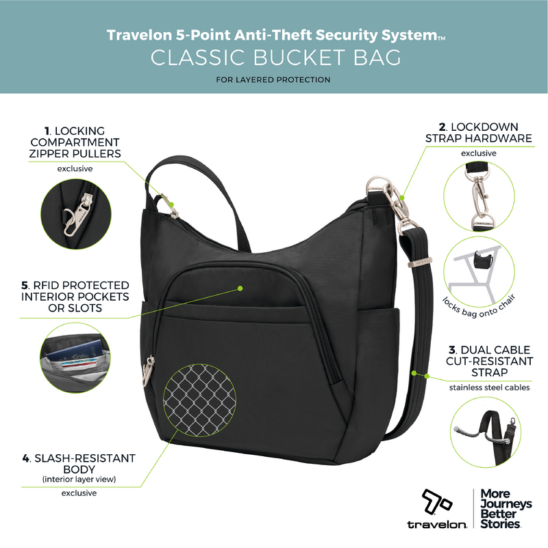 Main features of the Travelon Classic Anti-Theft Crossbody Bucket Bag include: