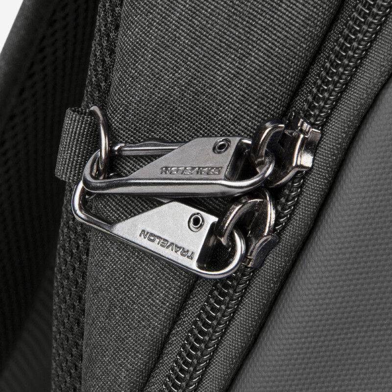 - Full Anti-Theft features include surround slash-resistant body panels and shoulder straps; locking compartments