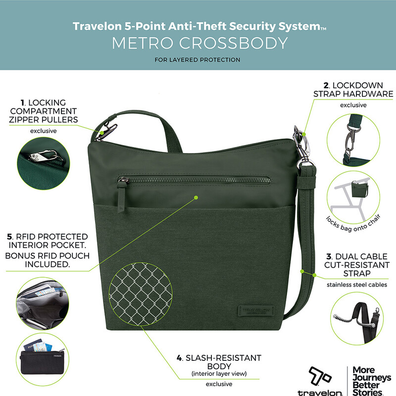 Main features of the Travelon Metro Anti-Theft Crossbody Bag include: