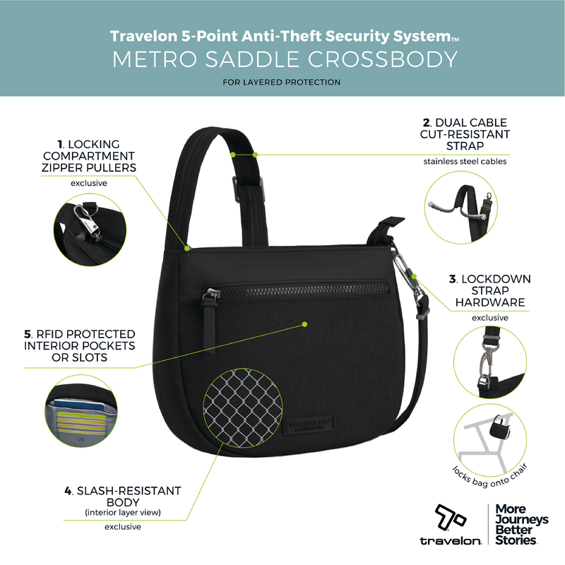 Main features of the Travelon Metro Anti-Theft Saddle Crossbody Bag include: