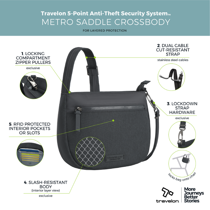 Main features of the Travelon Metro Anti-Theft Saddle Crossbody Bag include: