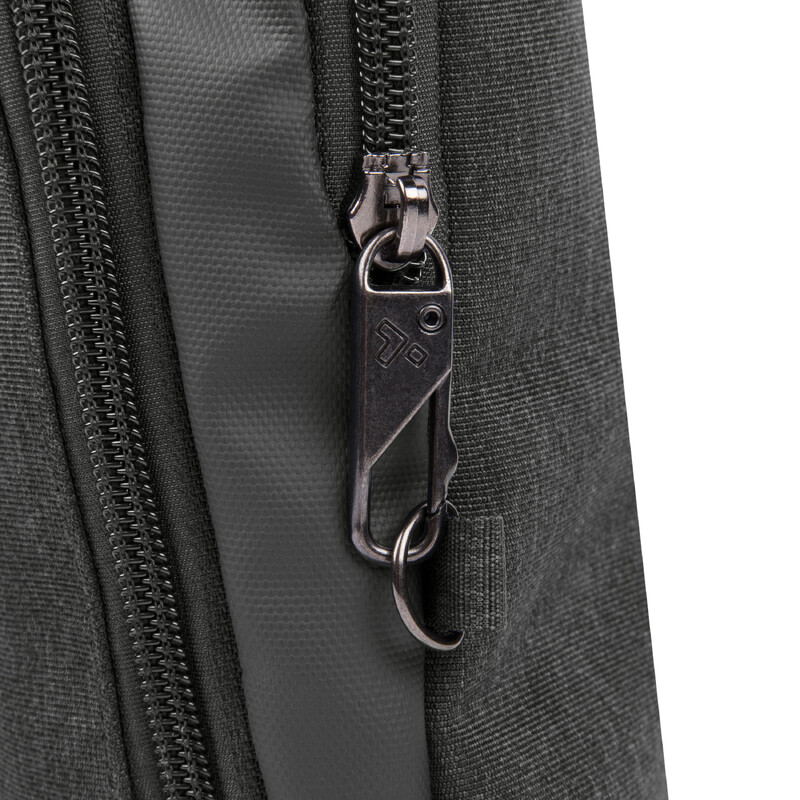 - Full Anti-Theft features include surround slash-resistant body panels and shoulder strap; locking compartments; lockdown strap