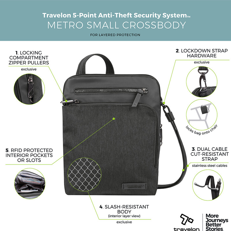 Main features of the Travelon Metro Anti-Theft Small Crossbody bag include: