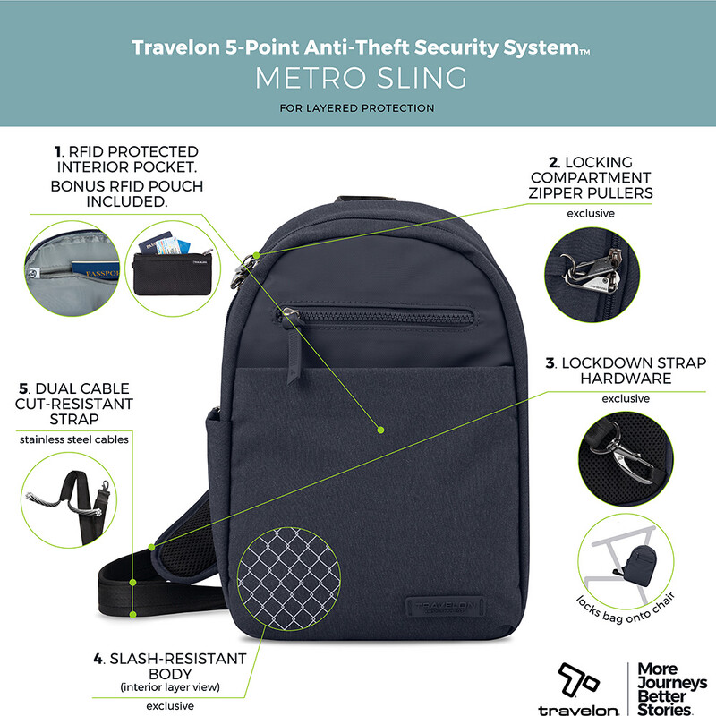 Main features of the Travelon Metro Anti-Theft Tablet Sling Bag include: