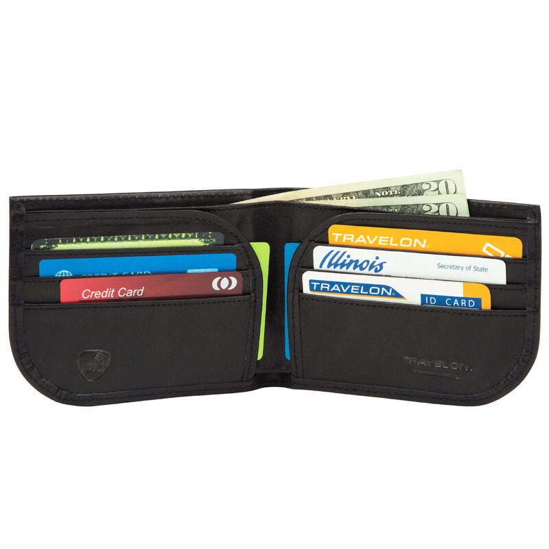 Main features of the Travelon RFID Blocking Front Pocket Leather Wallet include: