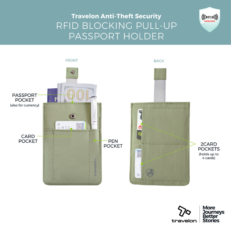 Travelon RFID Blocking Pull-Up Passport Holder Moss 43702 - ORDER NOW FOR DELIVERY IN MAY 2026