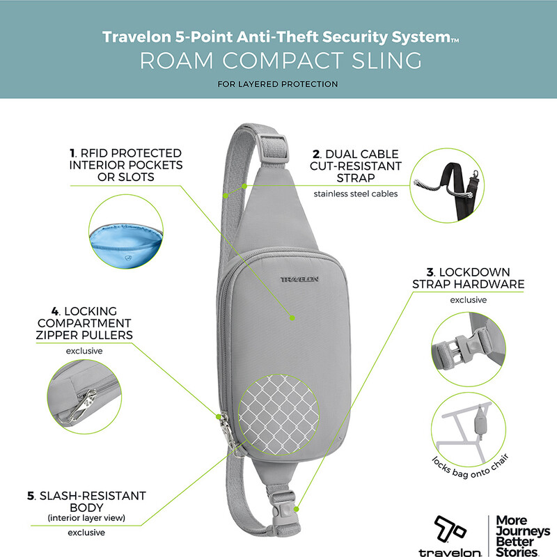 Main features of the Travelon Roam Anti-Theft Compact Sling include: