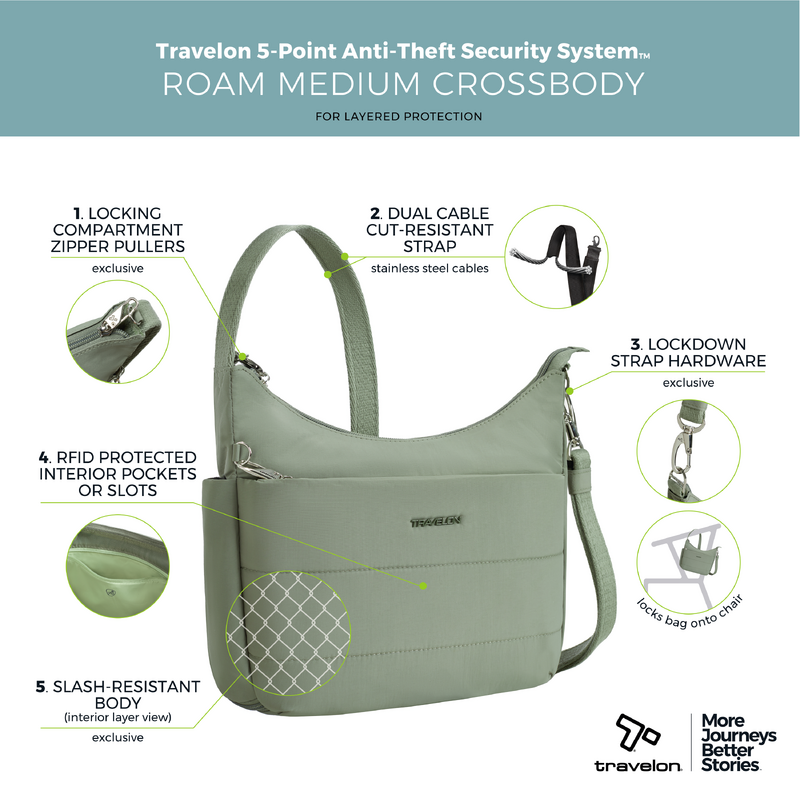 Main features of the Travelon Roam Anti-Theft Medium Crossbody include: