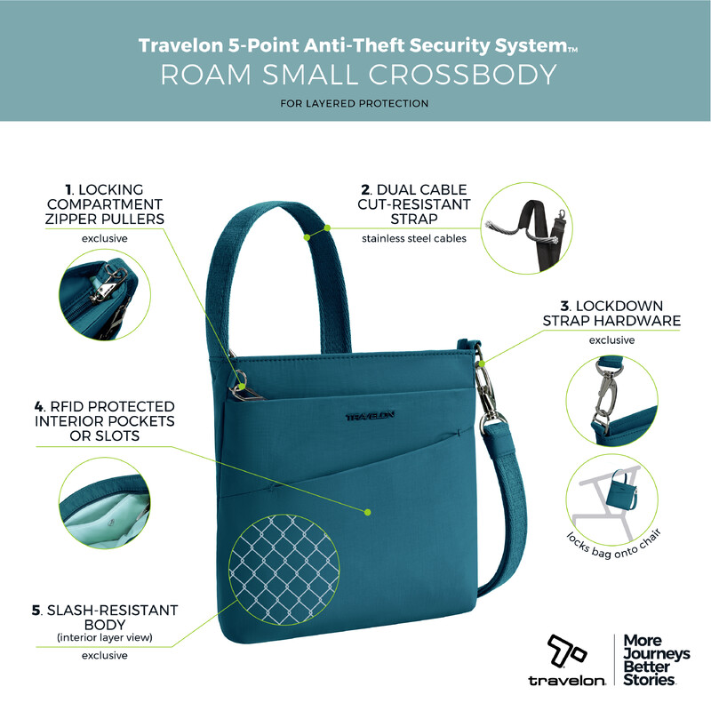 Main features of the Travelon Roam Anti-Theft Small Crossbody Bag include:
