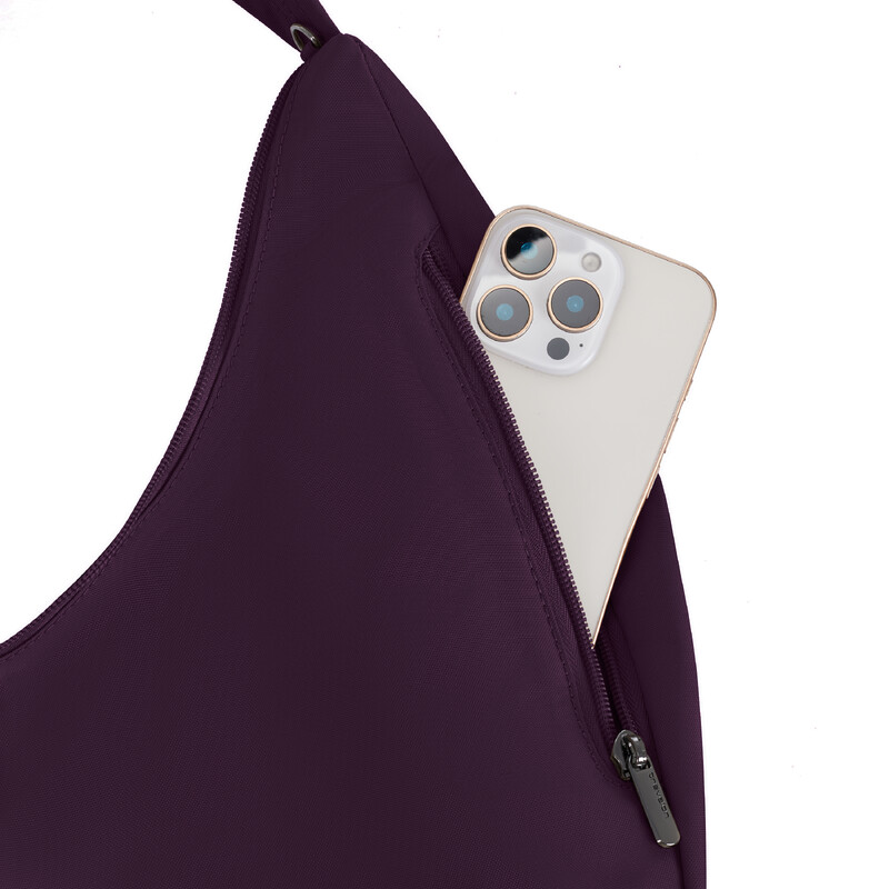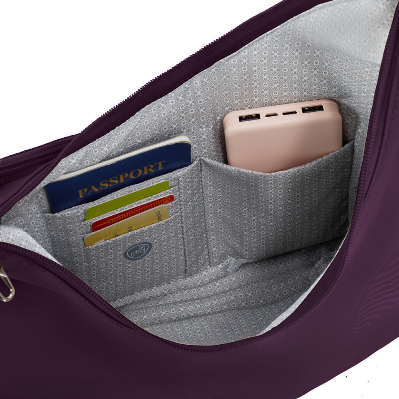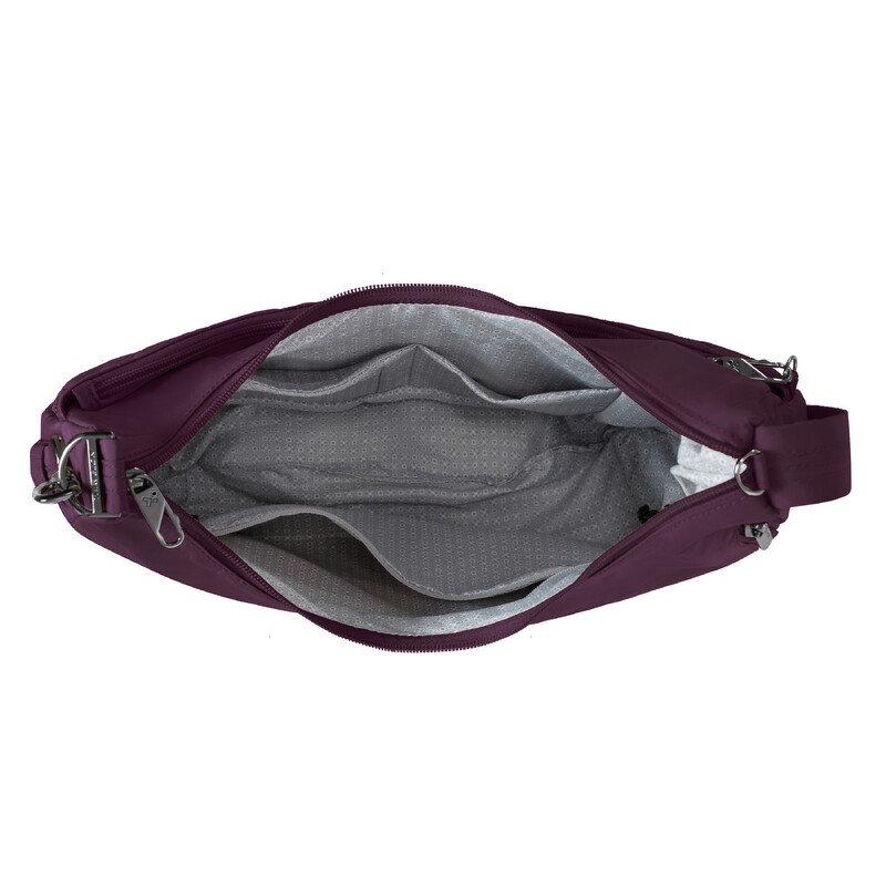 Travelon Runways Anti-Theft Asymmetric Hobo Bag Plum 43716 - ORDER NOW FOR DELIVERY IN MAY 2026