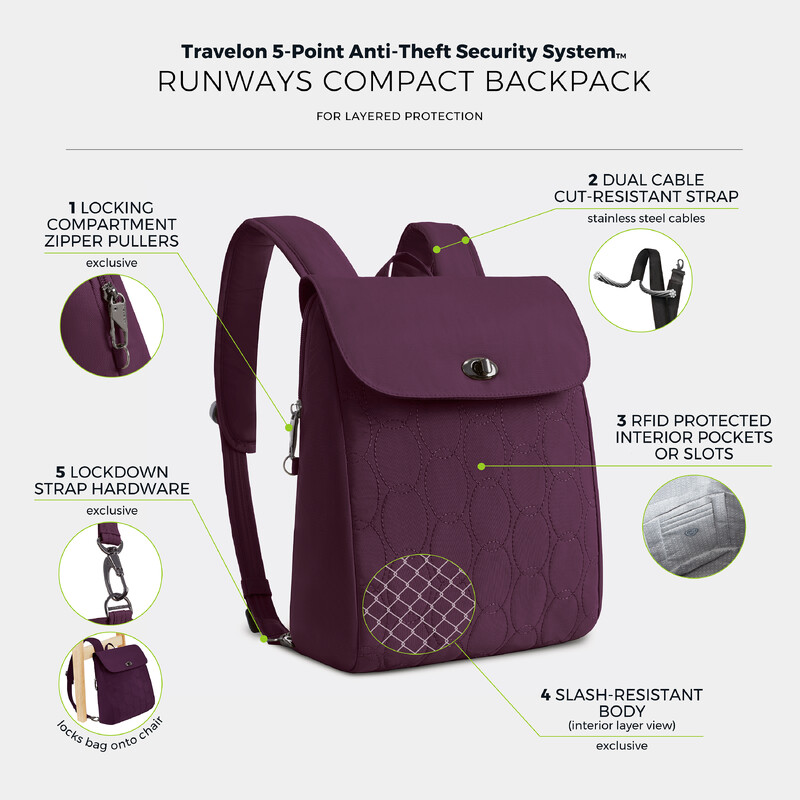 Travelon Runways Anti-Theft Compact Backpack Plum 43717 - ORDER NOW FOR DELIVERY IN MAY 2026