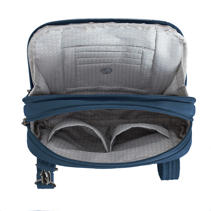 Travelon Runways Anti-Theft Double Compartment Tablet Crossbody Ocean 43714 - ORDER NOW FOR DELIVERY IN MAY 2026
