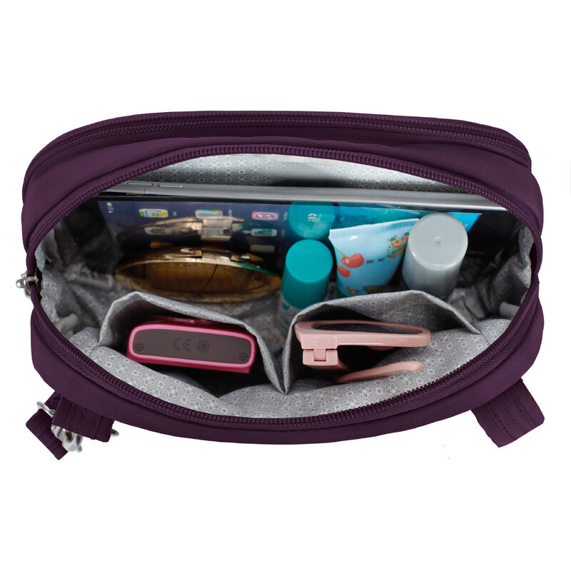 Travelon Runways Anti-Theft Double Compartment Tablet Crossbody Plum 43714 - ORDER NOW FOR DELIVERY IN MAY 2026