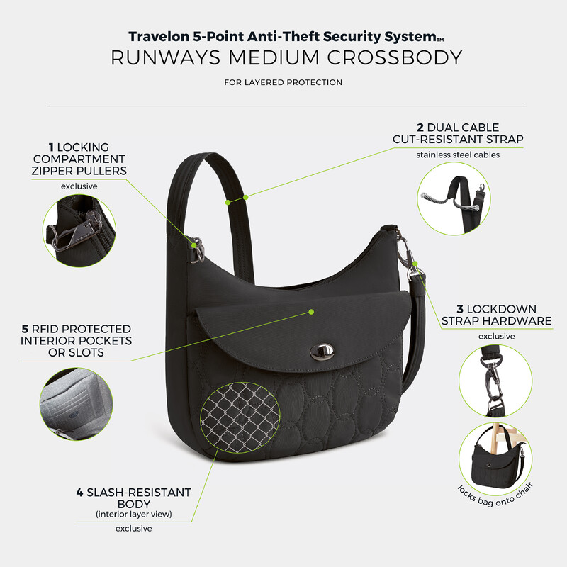 Main features of the Travelon Runways Anti-Theft Medium Crossbody Bag include: