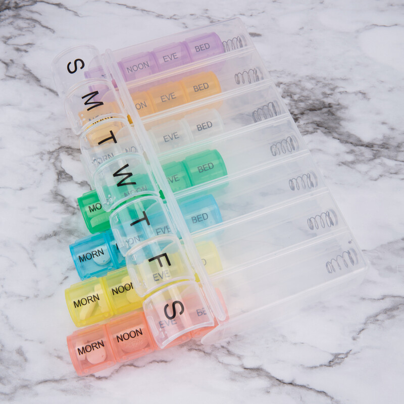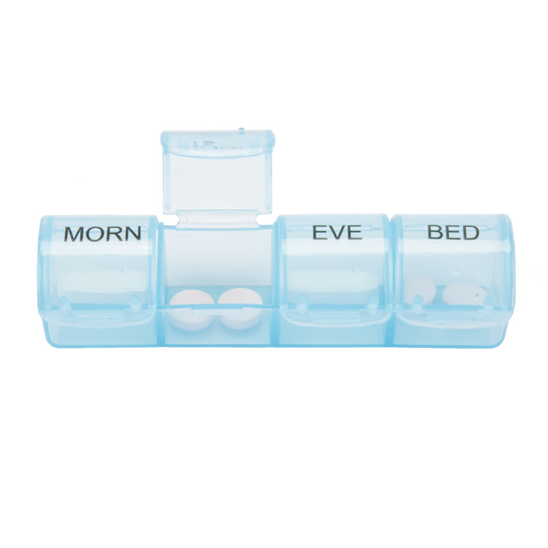 - Each organizer contains 4 divided compartments: MORN, NOON, EVE & BED