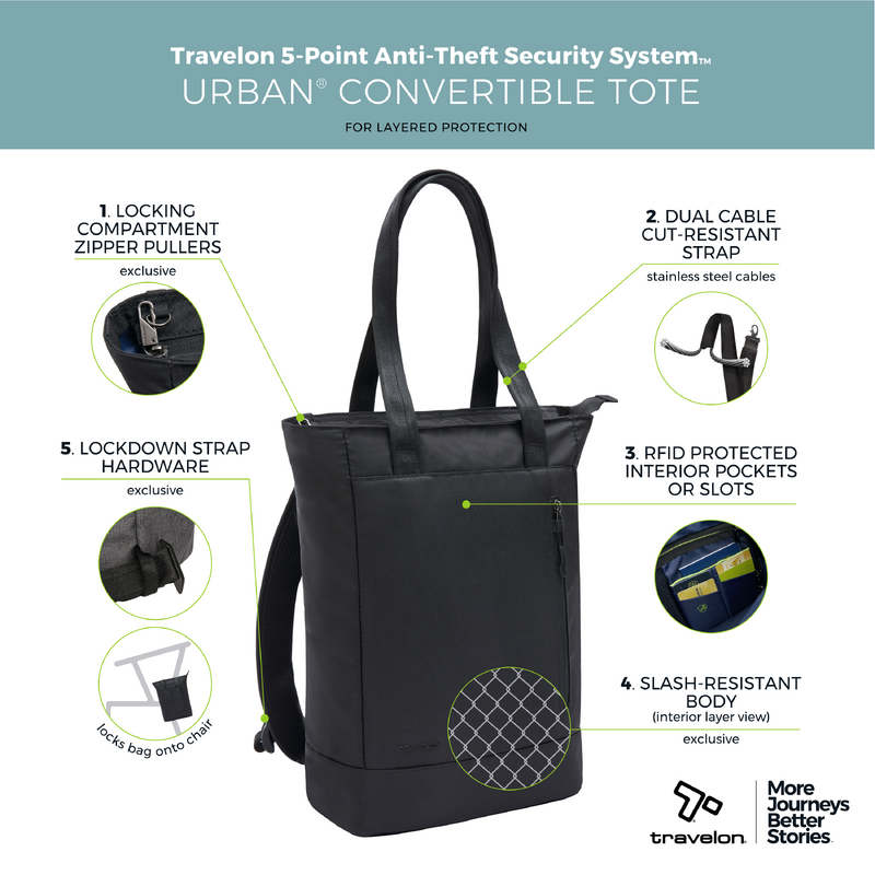 Main features of the Travelon Urban Anti-Theft 15.6" Laptop Convertible Tote include: